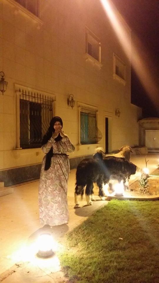 Eid prayer starts around 6am, so I decided it best to stay with my Saudi friend the night before Eid so that I wouldn’t have to worry about finding transportation early the next morning to celebrate with her. I arrived to her home as soon as her brother, mother, and daughter were leaving to go pick an animal to slaughter. My friend (I don’t want to reveal her identity for security reasons, so we will call her Sara for the sake of the story) told me that her aunt also sent a sheep to the family, and it would be arriving shortly. I was greeting her sisters when the first sheep came.