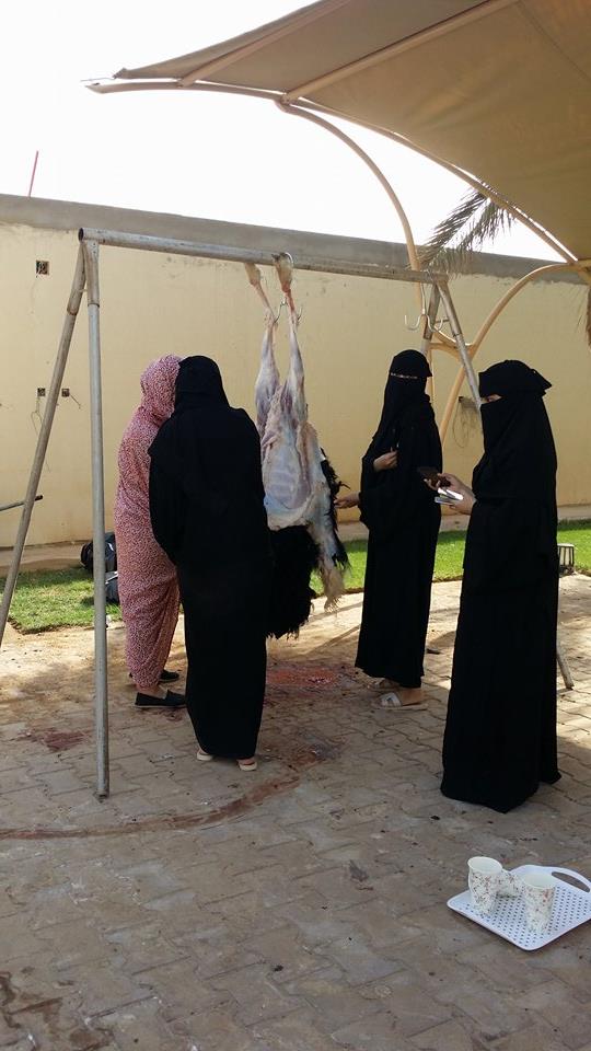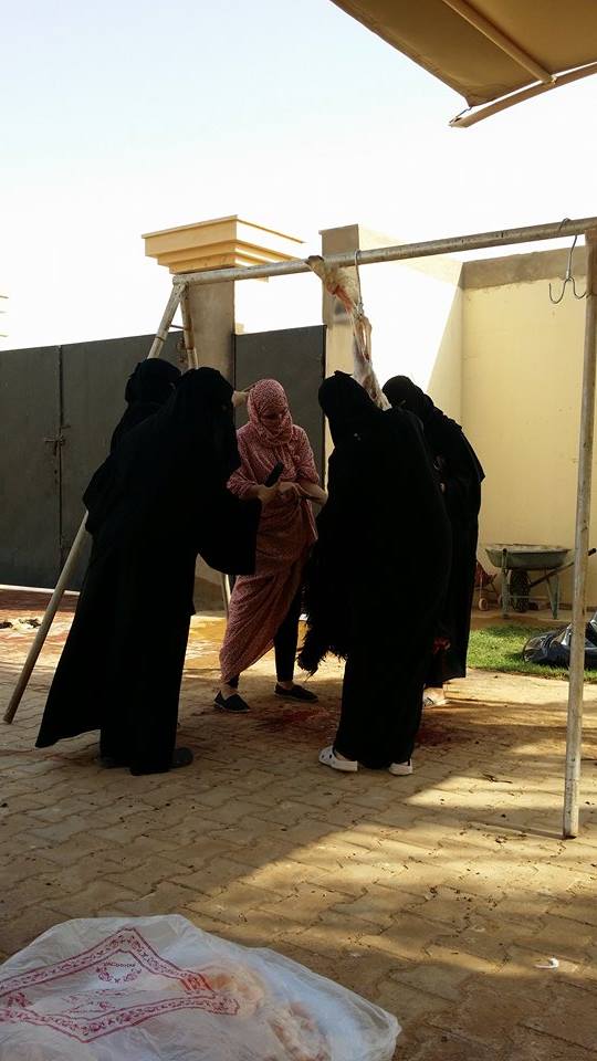 The cool thing was that it was kind of a family effort though. Yeah, the men were the ones who actually moved the sheep and slaughtered the sheep and got them on the meat hooks. But after the animal had been killed, the women took over and did just as much work. They butchered the animals and separated the meats and packaged them appropriately. That’s not even the most impressive thing- they did it all while wearing niqab!